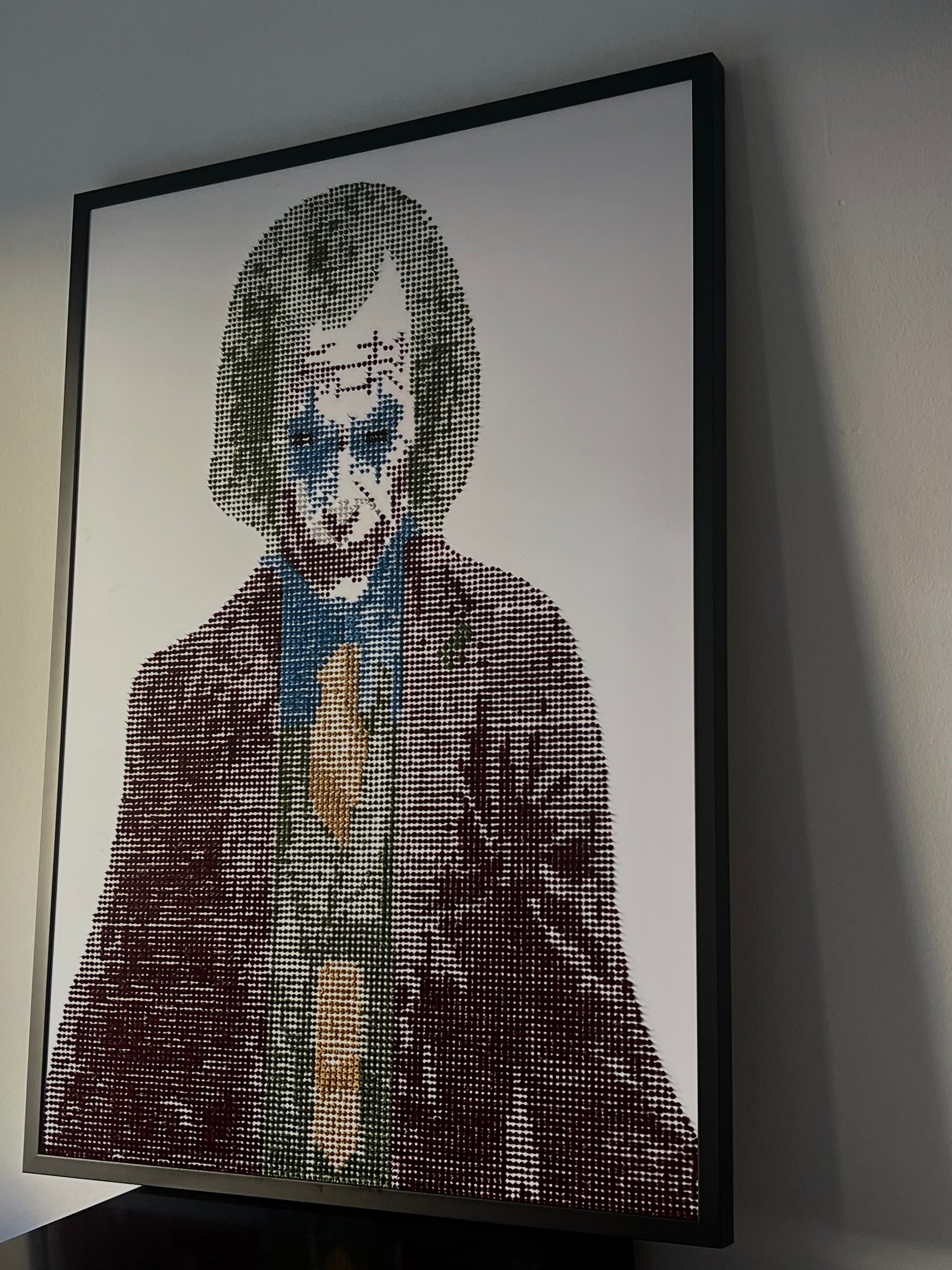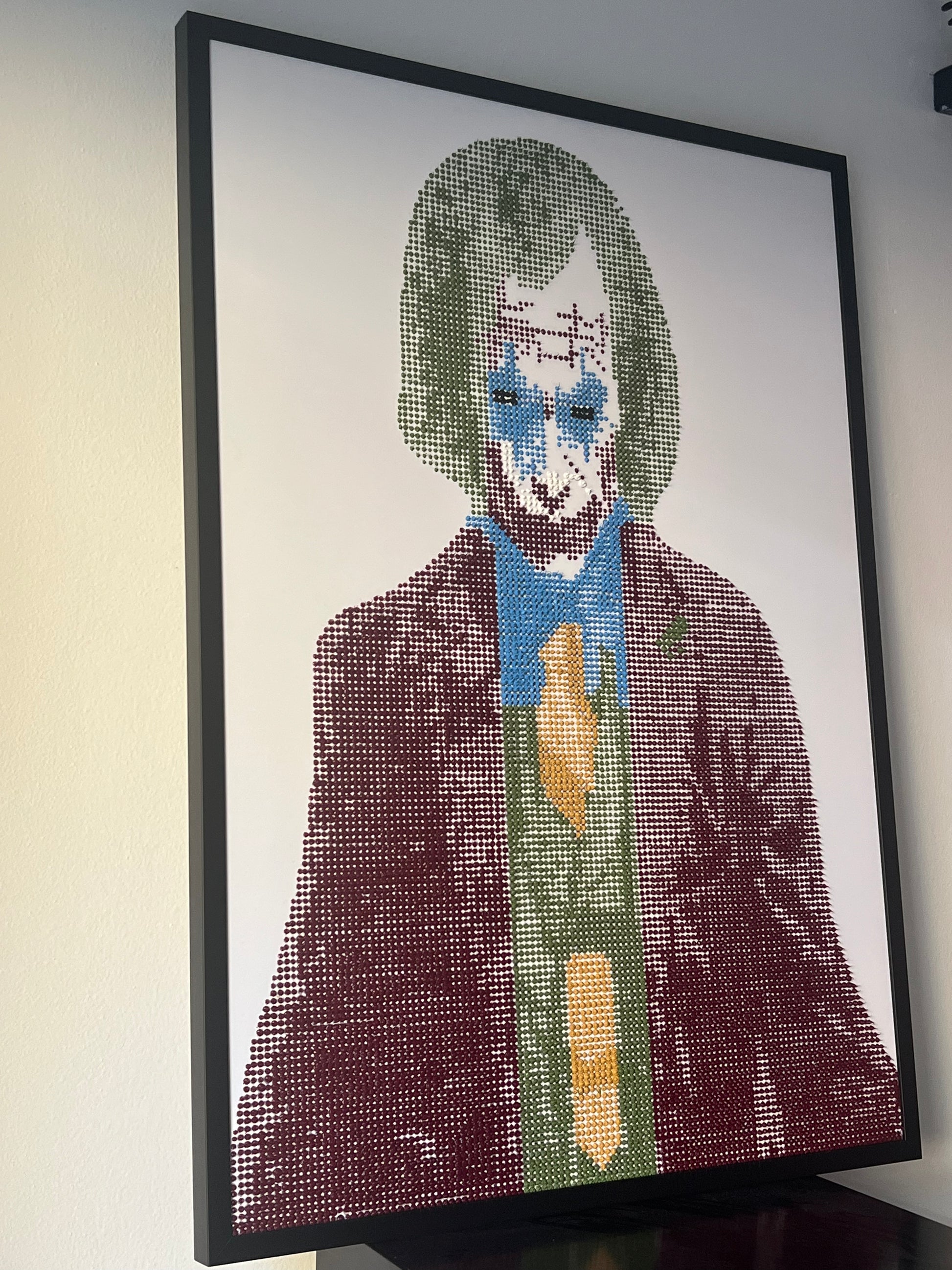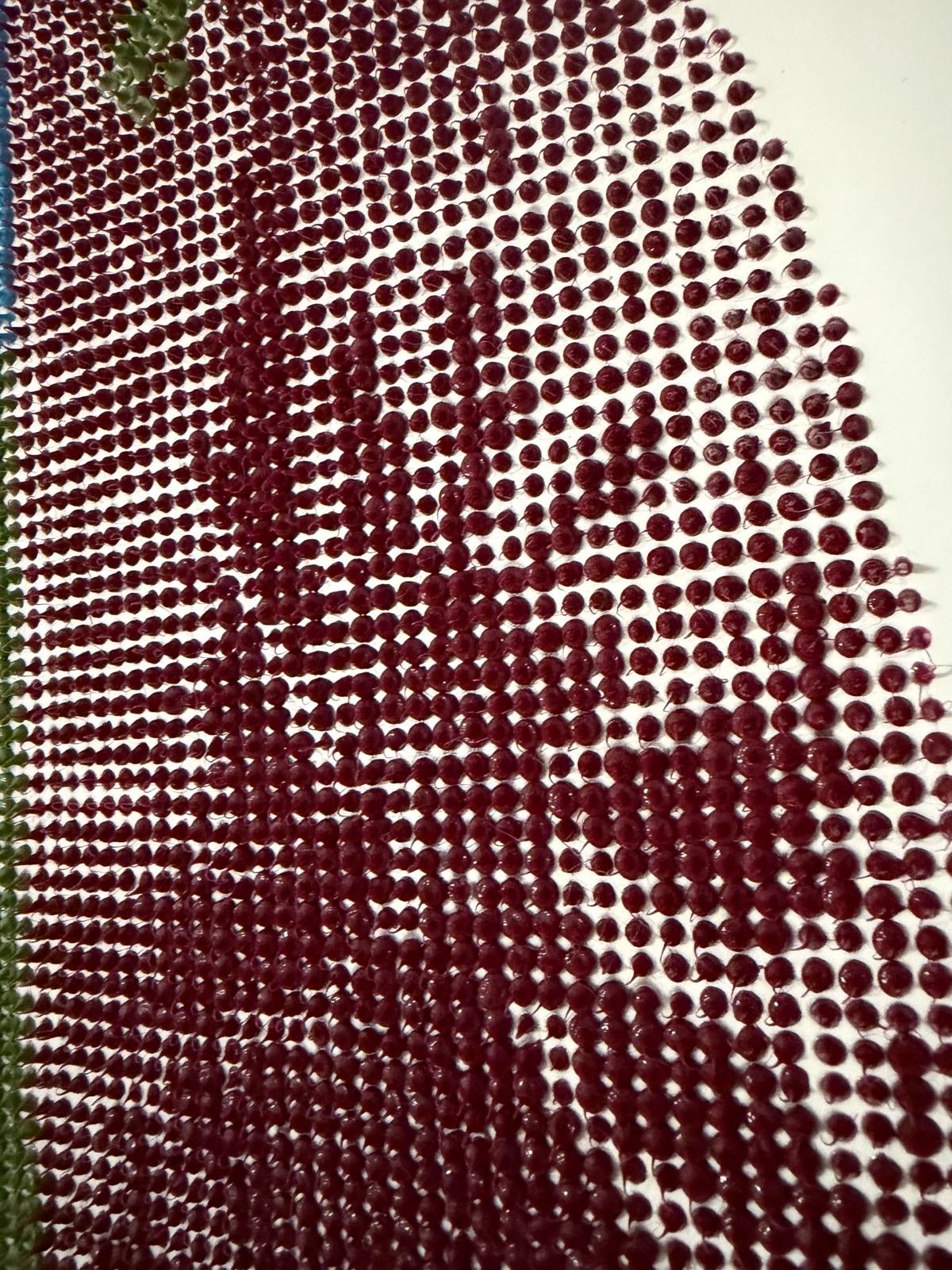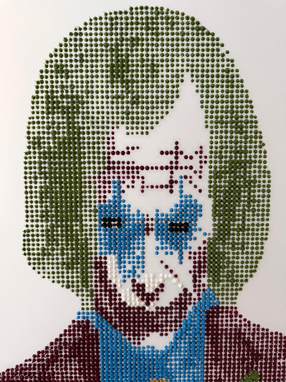 Realizzata interamente a mano con oltre 10.000 gocce di silicone colorato, applicate una ad una per creare una superficie materica e tridimensionale.