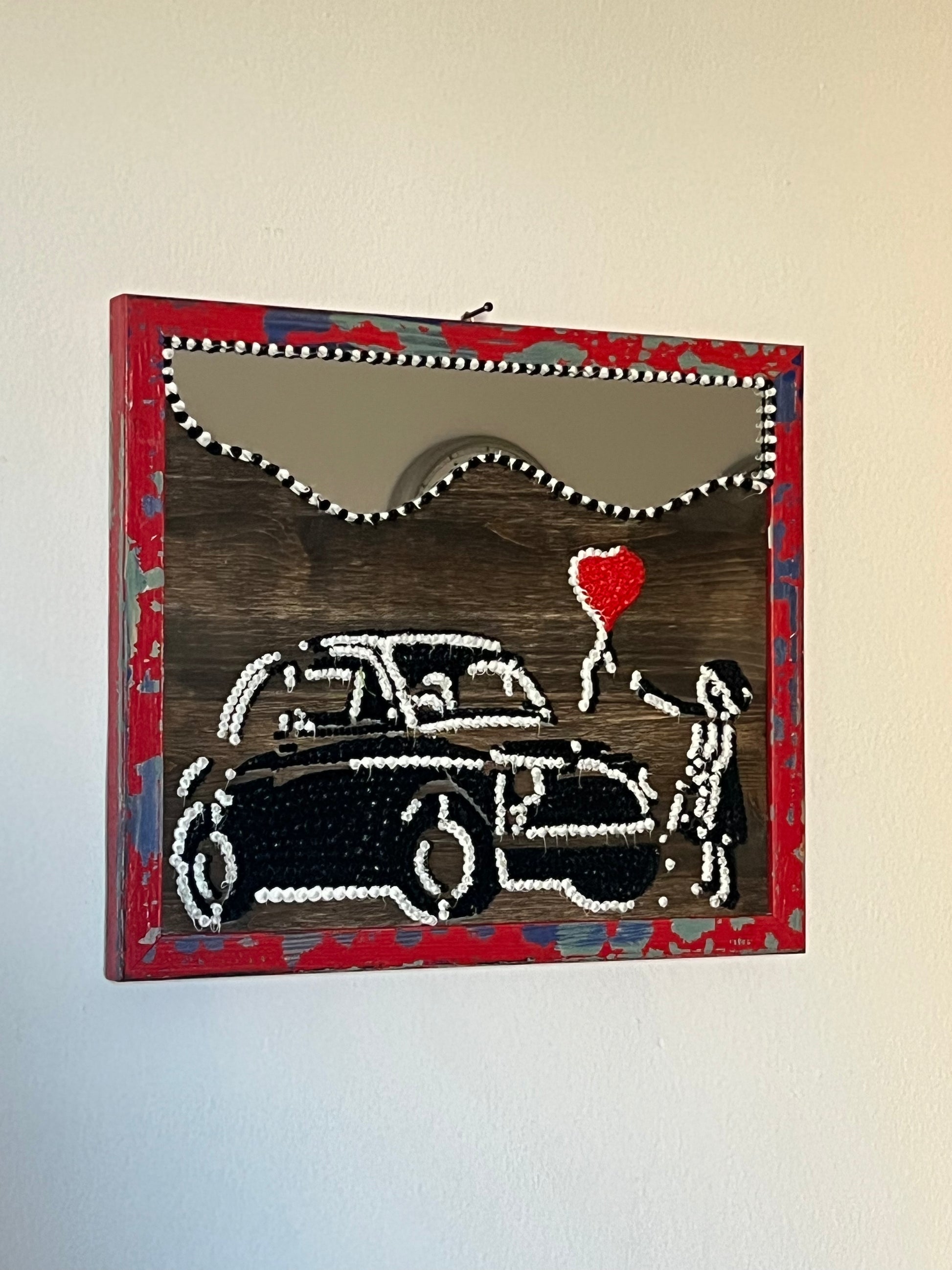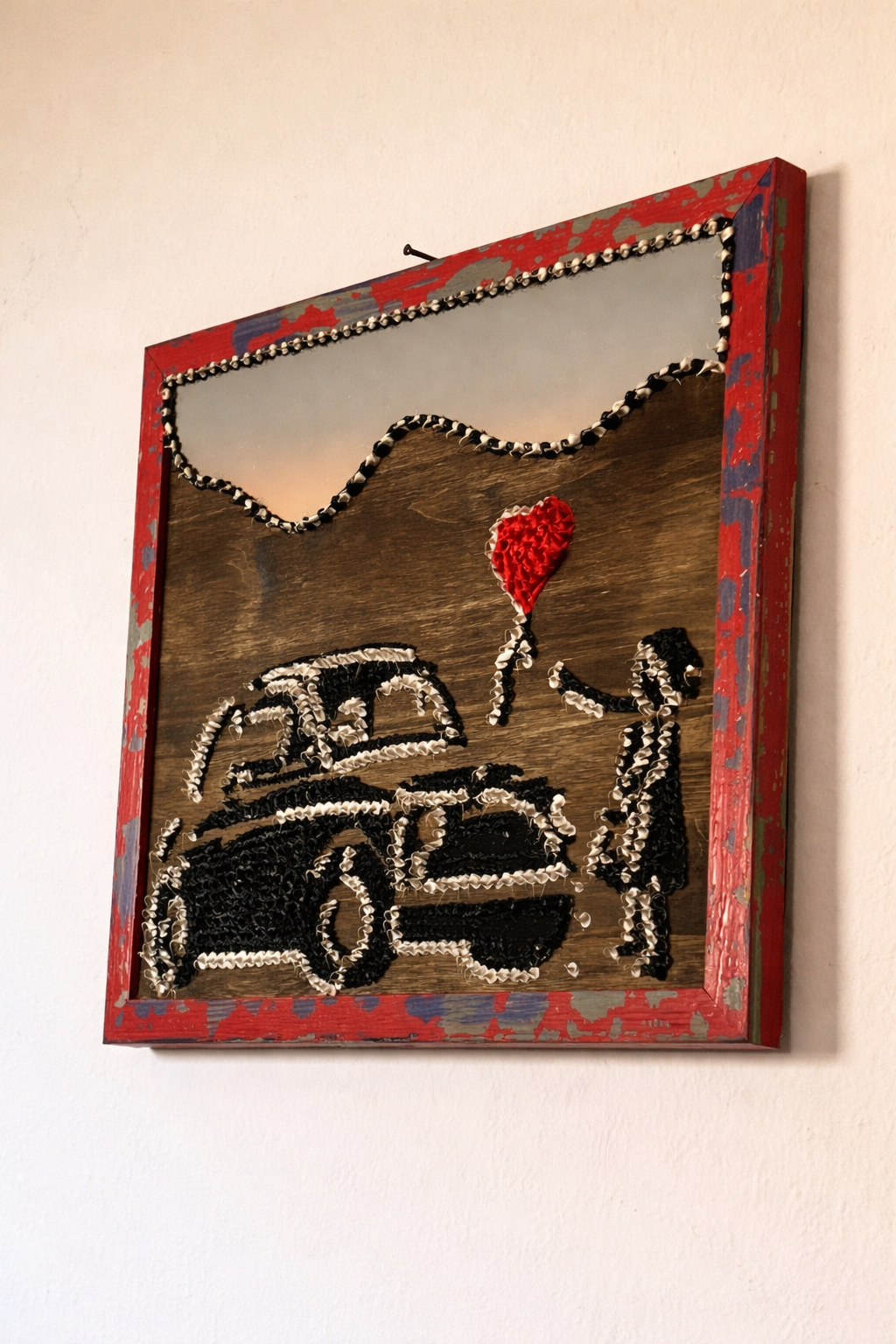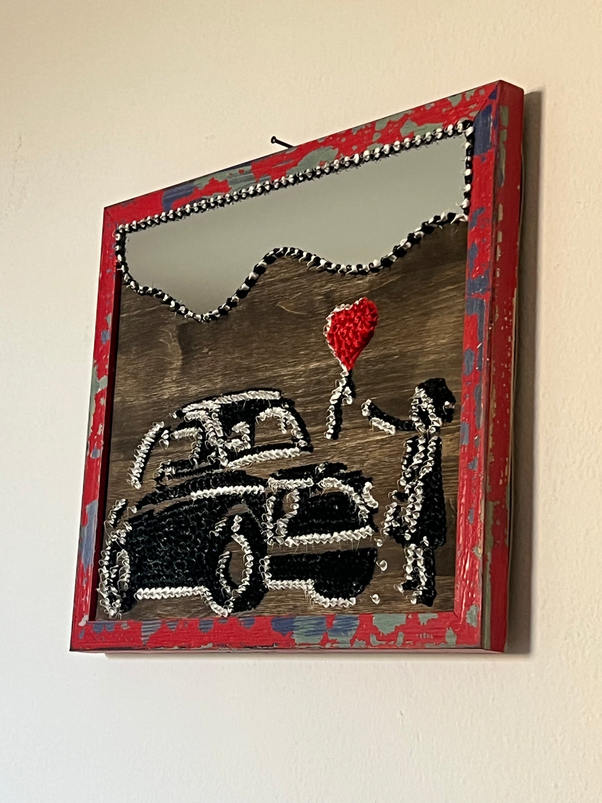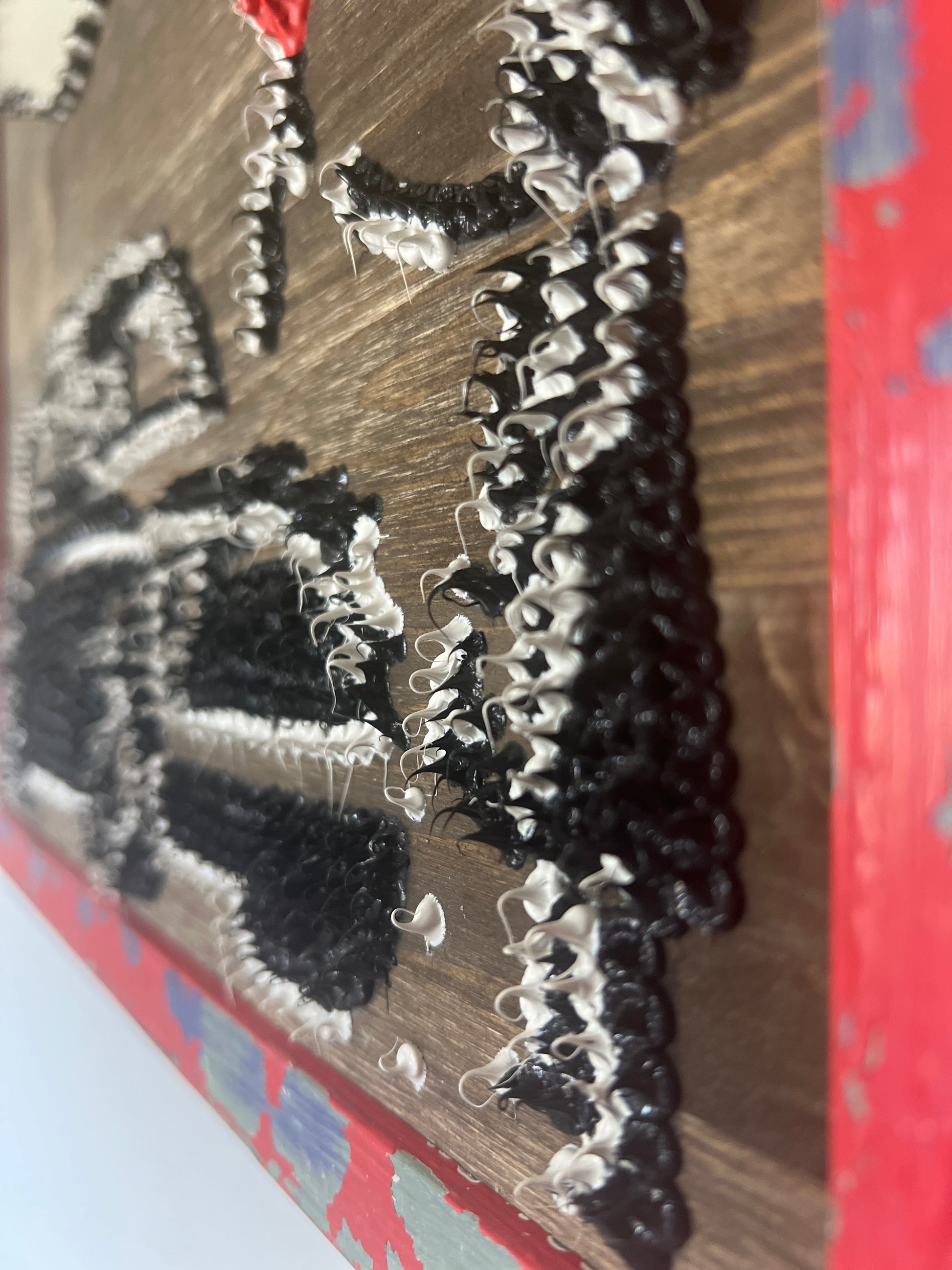 Opera realizzata a mano su base in legno, caratterizzata da un forte impatto visivo e soprattutto tattile.